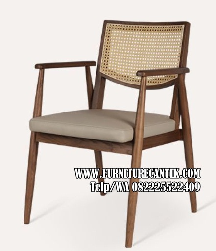 Kursi ini juga kami kombinasikan dengan rotan yang menambah kesan vintage dan tampilan yang menarik. Mengenai ukuran sudah kami sesuaikan agar nyaman ketika sedang diduduki yaitu 63 x 63 x 79 cm. Kami lengkapi juga kursi ini dengan sandaran tangan akan semakin nyaman untuk para penggunanya. Dengan demikian, kursi ini merupakan produk yang efisien dan fungsional untuk mengisi dan menyempurnakan furniture di rumah atau ruangan yang Anda miliki. Pada tahap akhir atau finishing, kami memberi sentuhan warna coklat natural yang selaras dengan kombinasi rotan dan desainnya.