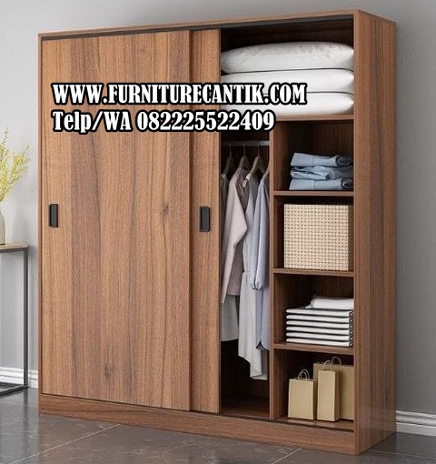 Lemari Pakaian Kayu Jati Minimalis Pintu Sliding