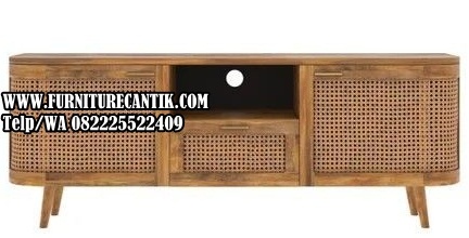 Meja TV Kayu Jati Kombinasi Rotan Klasik