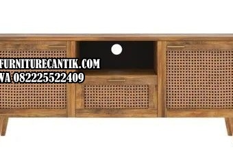 Meja TV Kayu Jati Kombinasi Rotan Klasik