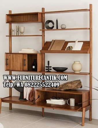 Rak Buku Serbaguna Kayu Jati Desain Modern