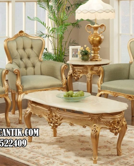 Set sofa ini terdiri dari 1 kursi sofa utama dan 2 kursi single ditambah meja yang membuat formasi menjadi lebih lengkap. Jok kain yang kami gunakan adalah jenis terbaik termasuk juga busa sehingga menjadi kombinasi yang sempurna. Pada proses finishing kami juga menggunakan bahan-bahan cat terbaik sehingga menghasilkan warna yang solid, tajam dan tentunya tidak mudah pudar. Warna tersebut adalah warna gold glossy yang melambangkan sebuah kemewahan dan tentunya semakin mempercantik tampilan set sofa tamu tersebut.